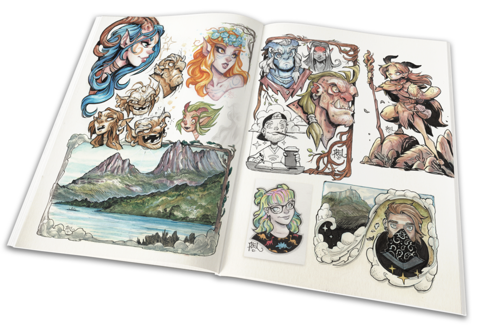 Step into the enchanted world of Wonderings Vol. 2, the second installment in my celebrated artbook series. This collection invites you to explore a hidden realm of 100's of fantasy characters and creatures, pin-up beauties and personal travel experiences accumulated over the span of the last four years, brought to life through stunning illustrations.